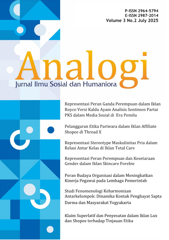 Analogi: Jurnal Ilmu Sosial dan Humaniora publish twice a year January and July by Faculty of Social Sciences and Humanities, Universitas Muhammadiyah Klaten.Analogi seeks to publish original research articles on Communications, Managements, and Accounting. The Journal Published manuscript in Bahasa Indonesia and English.